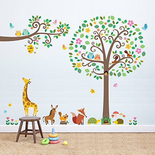 -. Title : Decowall DML-1502P1512 Large Scroll Tree & Branches with Animals Peel and Stick Nursery Kids Wall Decals Stickers