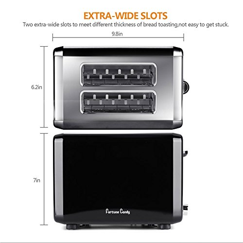 Equippes with extra wide slots for toast, frozen waffles, toaster pastries, and more.
