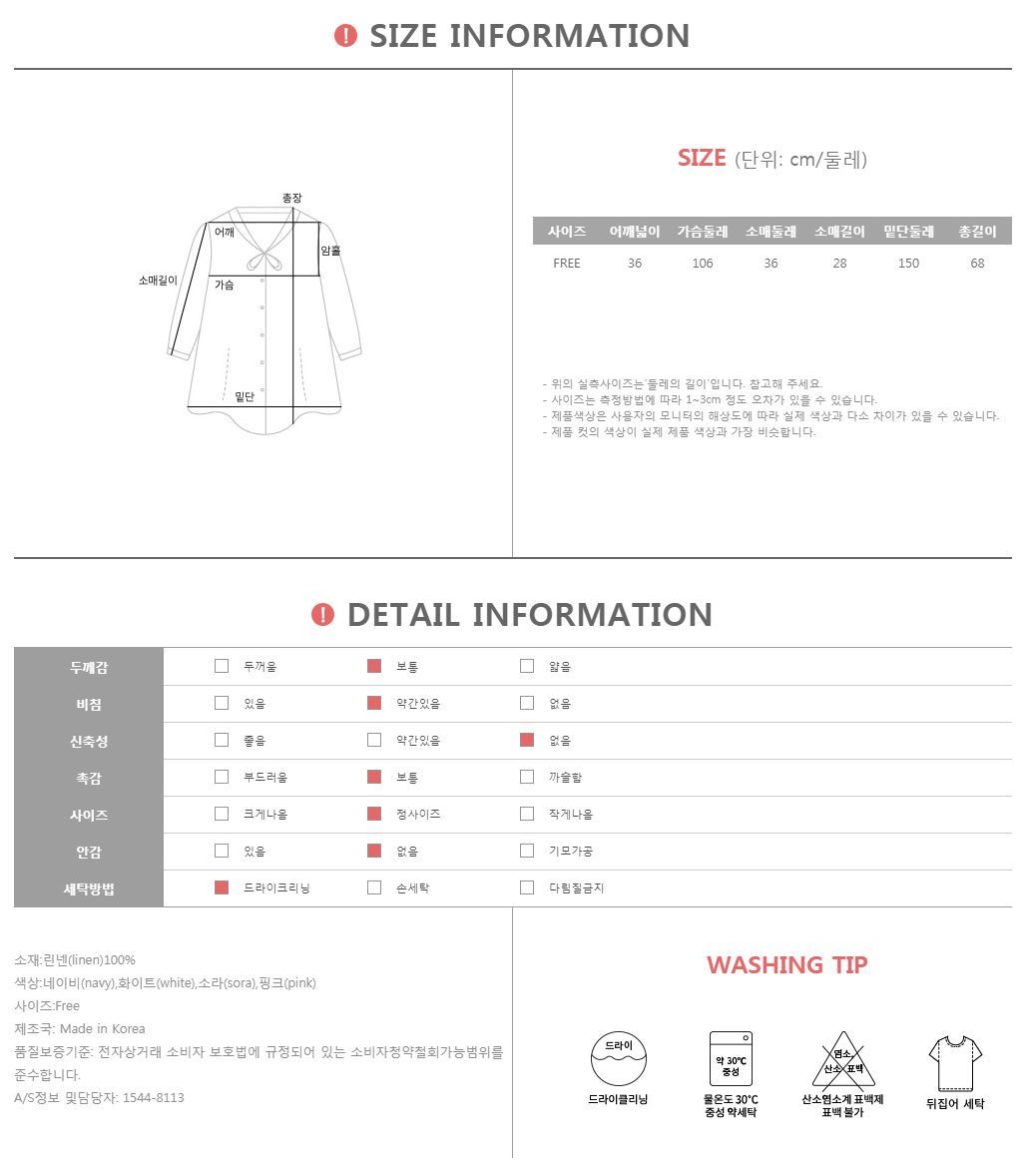 젠닛드 소매포인트 블라우스 #44114 소매 다이아레이스와 리본디테일로 포인트를 주어 로맨틱하면서 러블리한 스타일링이 가능해요! 깔끔하게 포인트 주기 좋은 아이템으로 단정하면서도 세련된 분위기를 연출해주며 소매와 가슴 사이 절개라인에 핀턱 포인트를 주어 볼륨감있는 실루엣으로 연출되요 로맨틱하면서도 풍성한 실루엣을 연출해줘 여유있고 날씬해보이는 핏감! 소매는 다이아 펀칭 레이스로 살짝 비침이 있으면서 소매단에 리본으로 마무리해줘 한층 더 여성스럽고 귀여운 느낌이에요~ 린넨100%의 소재감이지만 워싱처리로 린넨 특유의 까실함 없이 시원하고 기분좋은 착용감이에요 플레어스커트 또는 핏한 하의와 연출하셔도 더욱 로맨틱한 무드로 연출하기 좋아요~ 기본 데님과 매치하셔도 캐주얼하면서도 세련된 분위기를 느끼실 수 있어 여러가지 스타일링이 가능한 실용적인 아이템! 추천드려요^^ COLOR,SIZE TIP 컬러는 네이비,소라,핑크,화이트으로 구성되어 있으며, 모델의 착용 컬러는 핑크 입니다. 사이즈는 FREE(44-66)사이즈로 진행되오니 고객님의 체형에 맞게 선택하셔서 예쁘게 착용하시길 바랍니다.