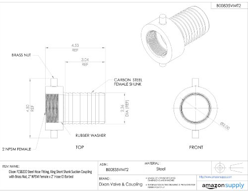 Dixon FCSB200 Steel Hose Fitting, King Short Shank Suction Coupling with Brass Nut, 2" NPSM Female x 2" Hose ID Barbed