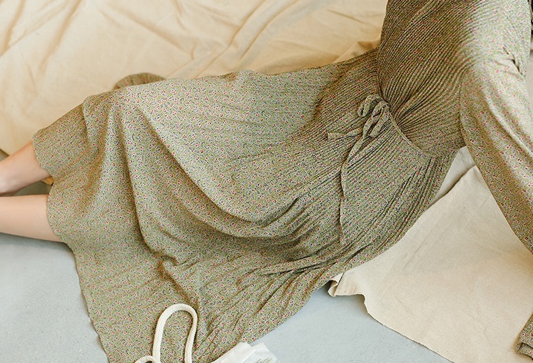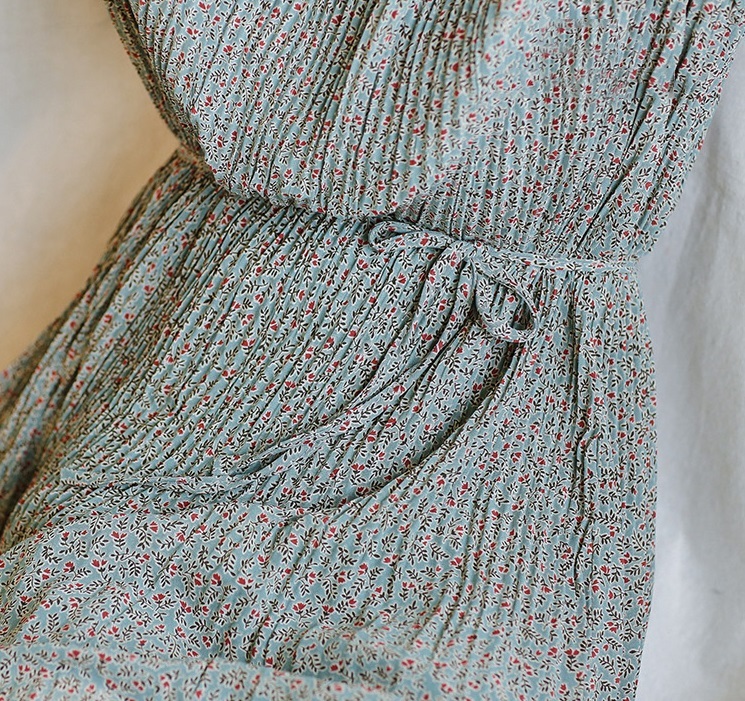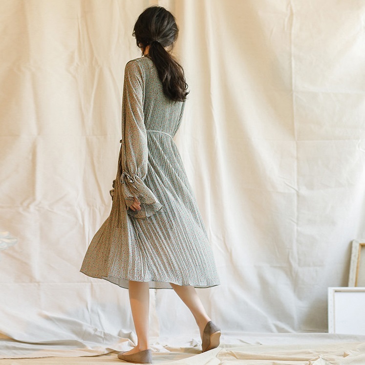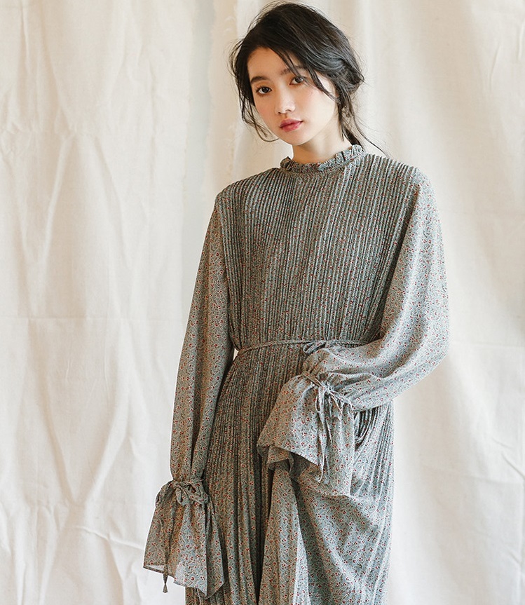 スカート部分は細かなプリーツ仕様で程よい広がりと丈感がポイントの1枚です。