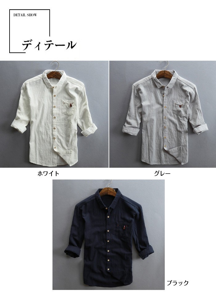 リネン シャツ 無地 シャツ メンズ 七分袖 シャツブラウス カジュアルシャツ トップス 大きいサイズ ゆったり グレー 白 ブルー 2018春夏秋新作 シャツ メンズ 七分袖 カジュアルシャツ トップス リネン シャツ季節を問わず着まわせる、幅広いシーズンで使えるシャツです。薄過ぎず厚過ぎず、程よい厚みの生地感で、馴染みやすい着心地で快適な着用感です。シンプルながらお洒落で凝ったディティールに仕上がっております。暖かい季節は一枚で、肌寒い季節はアウターと合わせて、レイヤードスタイルなど、非常に応用の利くオススメアイテムです。商品詳細:素材:麻88%カラー:ホワイト グレー ブラックサイズ:M L XL 2XL 3XL 4XL袖丈:7分丈スタイル:ファッション季節:春秋原産地:中国リネン シャツ 無地 シャツ メンズ 七分袖 シャツブラウス カジュアルシャツ トップス 大きいサイズ ゆったり グレー 白 ブルー 2018春夏秋新作 シャツ メンズ 七分袖 カジュアルシャツ トップス リネン シャツ
