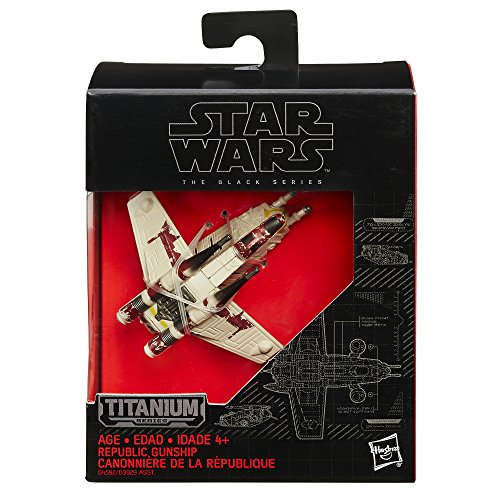 -. Binding : Toy -. Brand : Star Wars -. EAN : 0630509362585 -. Feature : Stand helps simulate hovering effect / Detailed vehicle looks just like the one in Star Wars: The Clone Wars / Re-create favorite battles from the Star Wars universe / Expand and enhance Star Wars collections / Includes vehicle and stand. -. IsAdultProduct : 0 -. Label : Hasbro -. Manufacturer : Hasbro -. Model : B4592AS0 -. MPN : B4592AS0 -. PackageQuantity : 1 -. PartNumber : B4592AS0 -. ProductGroup : Toy -. ProductTypeName : TOYS_AND_GAMES -. Publisher : Hasbro -. Studio : Hasbro -. Title : Star Wars: The Clone Wars Black Series Titanium Republic Gunship -. UPC : 630509362585 -. Warranty : No Warranty