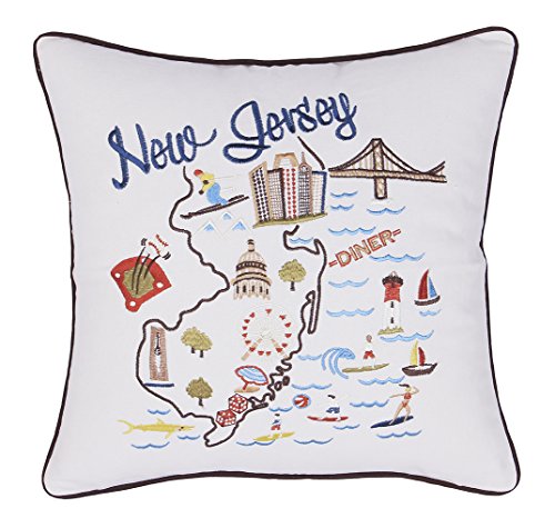 DecorHouzz Pillow Covers State/City Map Pillowcase embroidered cushion cover Birthday Gift Anniversary Gift Graduation Gift New home Gift 18"x18" (New Jersey)