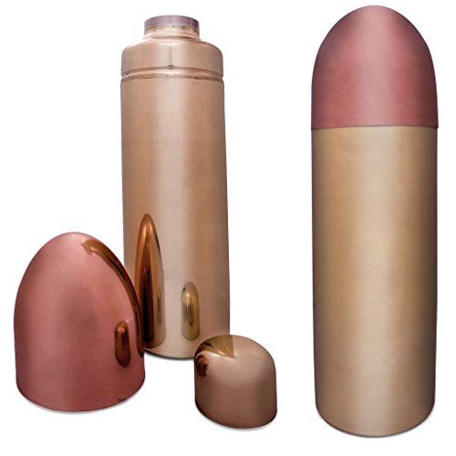 -. Feature : Fire up your party using this bullet shaped cocktail shaker. With a stylish brass plated body and a copper plated tip this mighty shaker has a 700ml capacity and measures 27cm high x 7.5cm in diameter / Remove the copper tip and then the brass cap and strainer to fill with your chosen ingredients, maybe a little crushed ice, then replace the strainer, cap and lid securely and shake. / To serve, simply remove the tip and cap and pour through the built in strainer.
