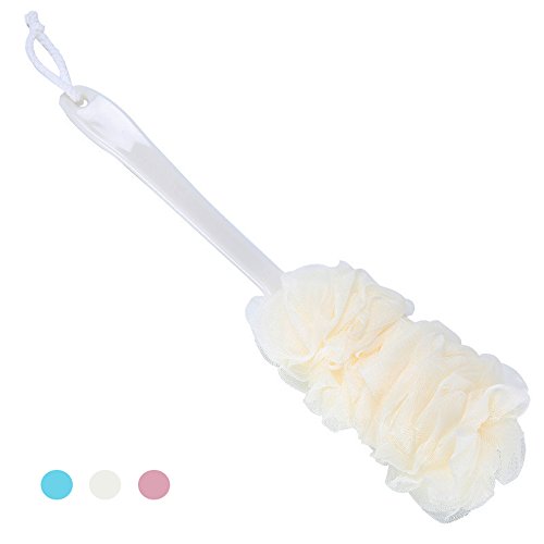 -. Feature : ✓Long handle bath brush, effortless for you to reach any parts of your body! / ✓Soft and flexible material body brush will not hurt your skin and help to deep clean your body; / ✓Nylon mesh bath sponge make rich bubble so you can enjoy a comfortable shower, perfect for women and men; / ✓The back scrubber is easy to storage, can be hang in bathroom or door, doesn't break or detach easily / ✓Long handle shower brush, length approx 18 inches, width approx 5 inches;