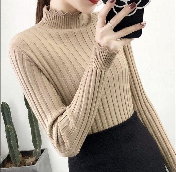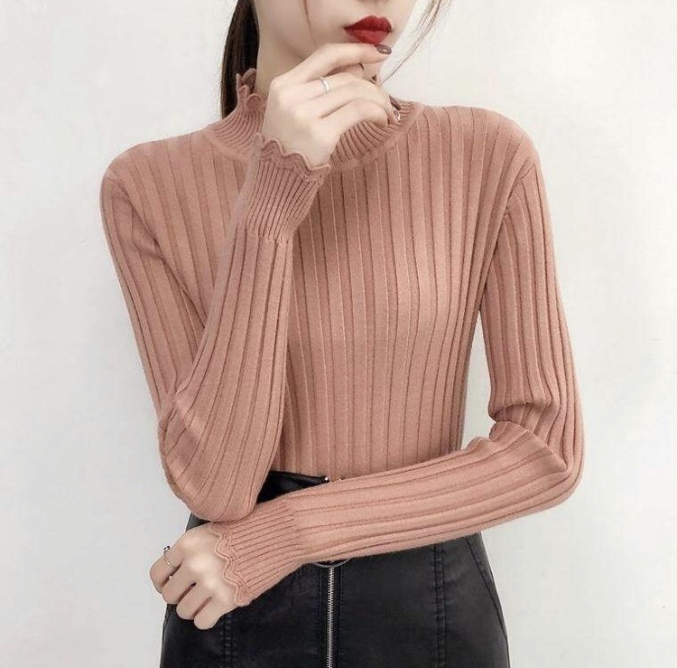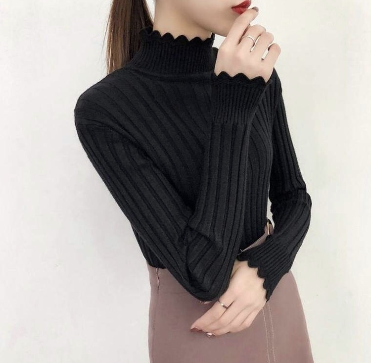 ハイネックと袖のデザインがかわいいリブニットです♡