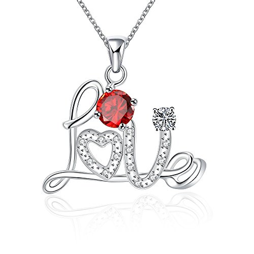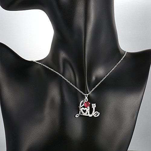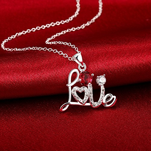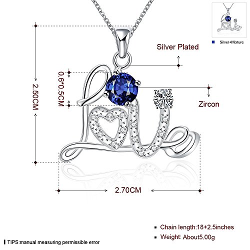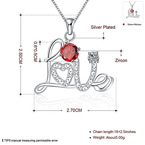 -. Feature : This sterling silver necklace composed with script Letter "Love",inlay with Crystals and Diamond. Aquamarine blue and Rubby Red, 2 diamond colors for your choice / The stone colors can match your different dresses in any occasion / It can be a special gift for your friends, lover, family...