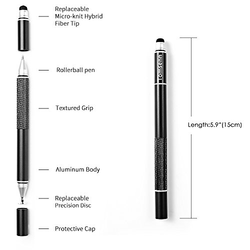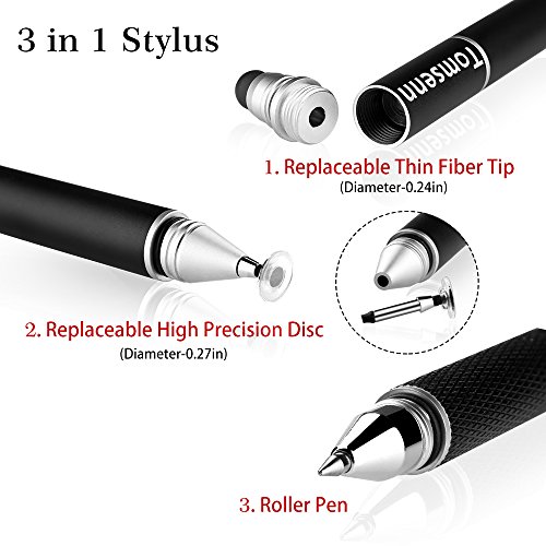 TOMSENN 3 In 1 Fine Point Stylus for iPad, iPhone, Android, Kindle, Samsung, and Windows Tablets 2 Packs