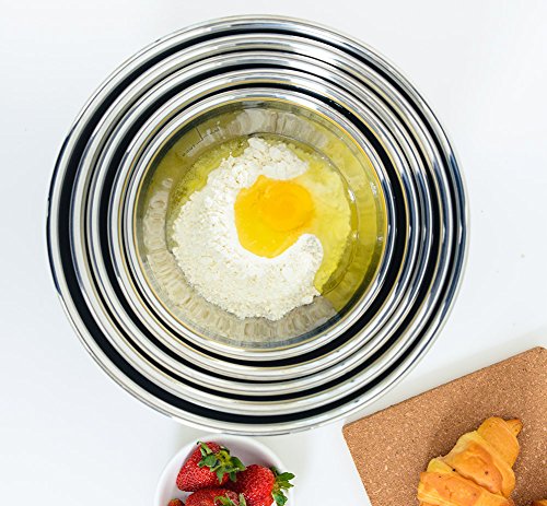 Stianless Steel Mixing BowlsDurable. Made from high quality stainless steel which won't rust, crack or chip. They are more durable and nicer to use than plastic bowls. The bowls are lightweight than glass and ceramic bowls, which makes them easy to handle, even ideal for the young bakers.