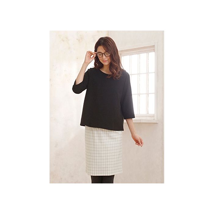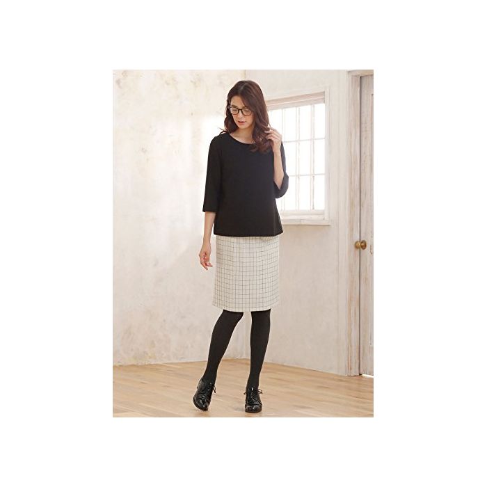 Angeliebe engineering《리베》 마타니티 윈드 펜 체크 타이트 스커트 산전산후 대응 임산부복 M ~ L 아이보리 × 블랙