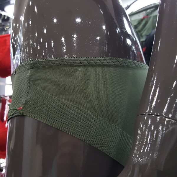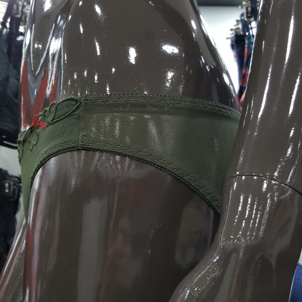 카키 색상의 하트 자수 스타일로 디자인된 코데즈 컴바인 여성 햄팬티 입니다. 팬티 안쪽은 면으로 처리되어 부드럽고 뒷면은 신축성이 좋은 망사 원단으로 섹시하게 연출 하실 수 있습니다.