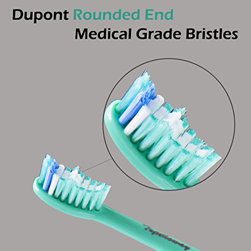 Our Sonicare brush heads e series are made with US Dupont rounded end medical grade Nylon Bristles, which is the same material as the Philips Sonicare toothbrush head; Gentle on your gum and blue reminder bristles fade in color to let you know when it's time to replace the brush head.