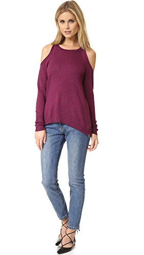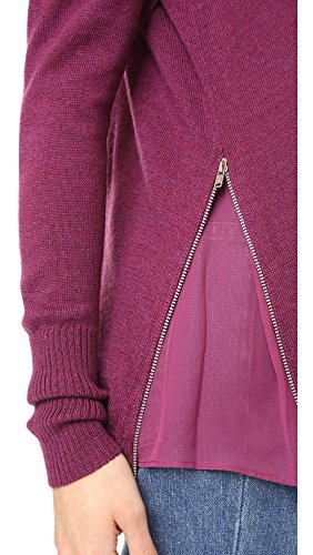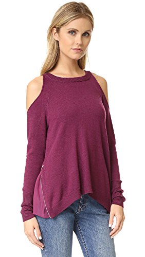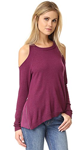 A cozy wool Ramy Brook sweater feels subtly edgy with cutout shoulders and exposed-zip side vents. Banded edges. Long raglan sleeves.
