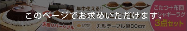 正方形タイプ(70cm幅)こたつ本体+布団+ラグ3点セットはこちら ![]() ホワイト正方形タイプ(70cm幅)こたつ本体+布団+ラグ3点セットはこちら ![]() 丸型タイプ(直径80cm)こたつ本体+布団+ラグ3点セット ![]() |