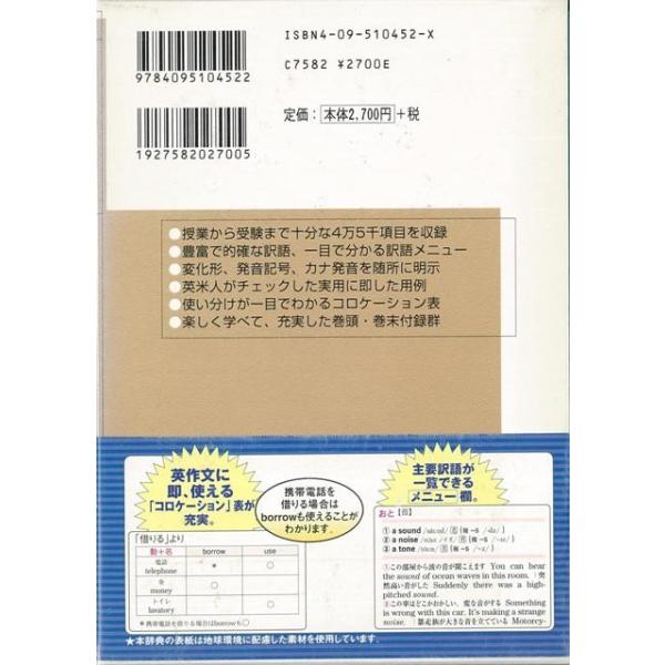 【商品説明】 定価(税込み):2,916円 値引き:10% OFF 収録項目は約4万5千。動詞の不規則変化形、随所に示した発音記号。訳語が一覧できる「メニュー」欄、一目でわかる「コロケーション」表、すぐに使える「基本構文」。コンピュータ用語は類書中もっとも充実の2色刷。 バーゲンブック 新品 特価 格安 語学 辞書 語学辞典 辞典 和英 発音 音 |