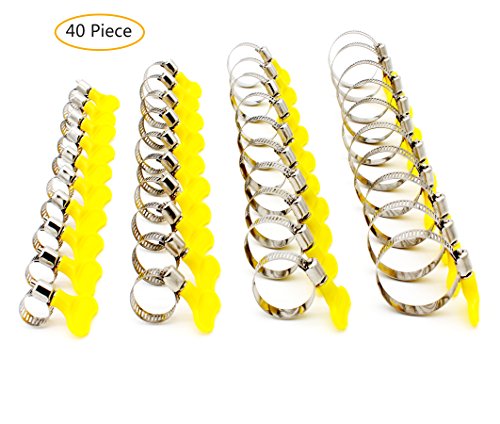 TSellk Adjustable Stainless Steel Hose Clamp, Pipe Clamp, Self-bringing Tools, 2/5" - 1 3/4", 40 Piece