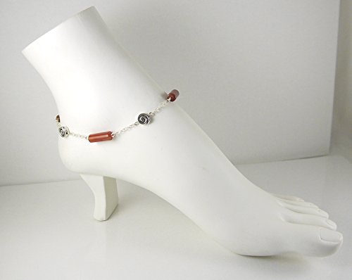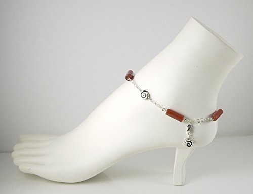 -. Title : Illusion Style Carnelian Anklet - 9 3/4" - Celtic Scroll , Station, Dangle