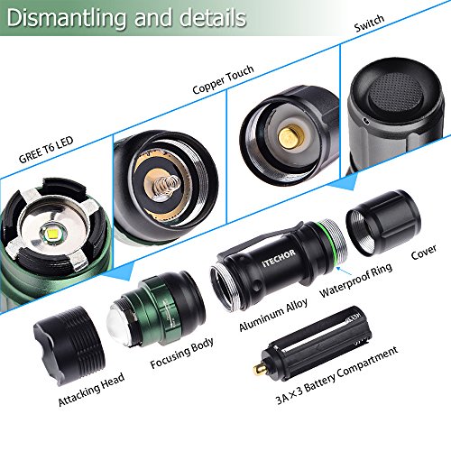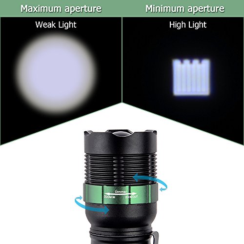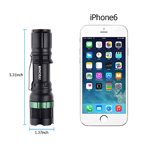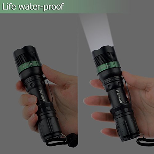 Flashlight, Water Resistant Super Bright Cree T6 800 Lumens 3-Mode LED Zoomable Flashlight Torch (Black)