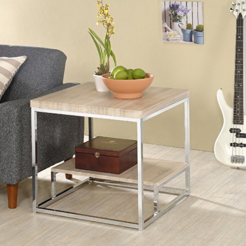 -. Title : Accent Table with Chrome Legs and Stylish Wooden Shelves in Light Finish