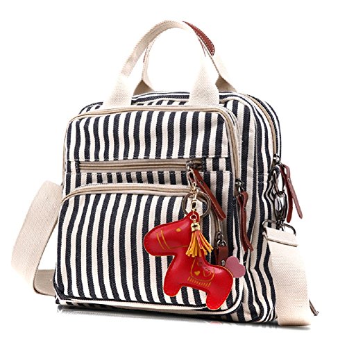 Urmiss Fashion Small Casual Canvas Multifunction Shoulder Messenger Bag/Crossbody Bag/Backpack/Handbag Navy Stripe(Not include pony pendant)