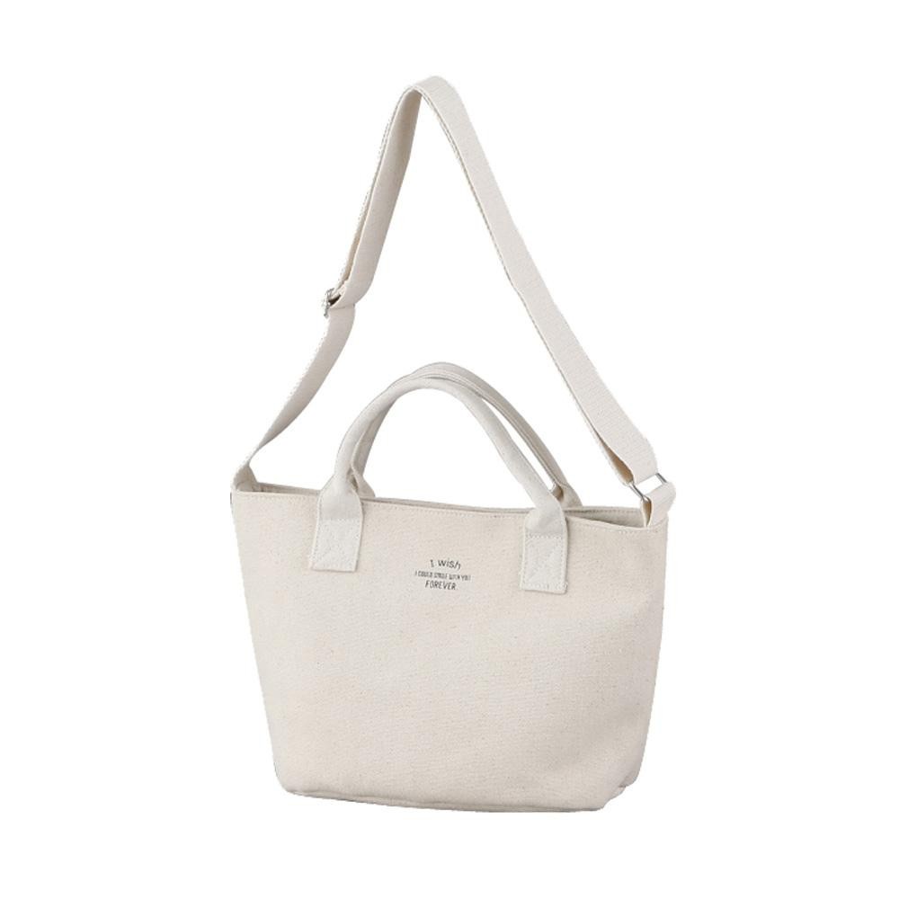 プリントされた文字の通り、このバッグを連れてスマイル♪な思い出を作ってほしいという気持ちから誕生しました。 製造国:中国 素材・材質:表生地:綿裏生地:綿、ポリエステル 商品サイズ:約35×15×22cm(取手含まず) 仕様:【ポケット数】外側×1、内側×1 ※サプライヤー直送品 ご注文後2~3営業日後の出荷となります【商品名】アビテ(Habiter) WISH 2WAYショルダーバッグ S LUA-002-IV