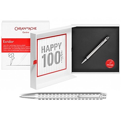 -. Feature : Caran d'Ache 100 year Anniversary edition / Rich palladium finish maintains its brilliance / High quality Swiss construction / Handsome chevron guillochage pattern / Goliath giant cartridge is included