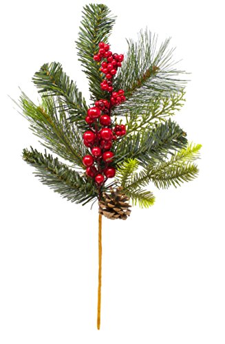 KT Home Decor 18 Inch Pine Berry Cone Branch Spray