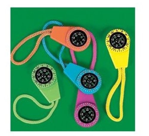 Studio : Oasis Supply Publisher : Oasis Supply Binding : Toy Product Description Neon Compasses On A Cord. Play the part of an explorer with these 1 1/2" colorful plastic compasses! Take them on walks, hikes and bike rides at the park! A perfect "find" for your lil' scout's backpack or at a nature-theme party. Each is on a 3" nylon cord. Compass for novelty use only. 0