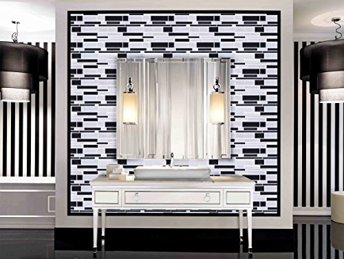 Self Adhesive Tiles,Peel and Stick Tile Backsplash for Kitchen Bathroom,Mist Silver Stick on Wall Tiles,Long Strip Marble Tiles,1/Sheet