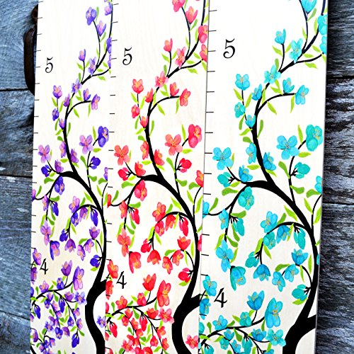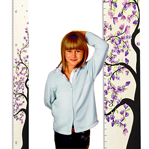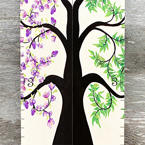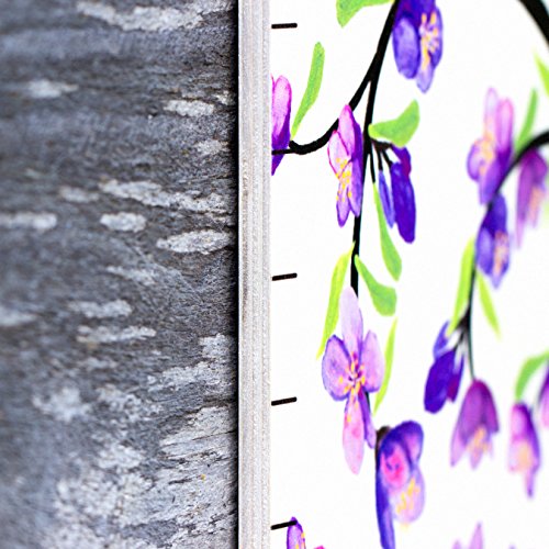 Growth Chart Art | Hanging Wooden Height Growth Chart for Girls - to Measure Baby, Child, Grandchild - Purple Flower Blossom Tree of Life – Nursery Wall...