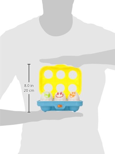-. Feature : Press eggs in front of carton to see them change color / Crack open the eggs to reveal colorful light-up buttons / Press buttons to hear counting, numbers, colors and sounds / 3 removable eggs offer rattling sounds when shaken