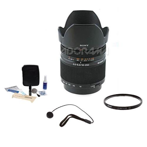 -. Binding : Electronics -. Brand : Sony -. Feature : Get intimate views of your subjects from faraway distances. / This 14X high magnification zoom lens is what you need for those dramatic perspectives. -. IsEligibleForTradeIn : 1 -. Label : Sony -. Manufacturer : Sony -. Model : 18-250mm -. MPN : SAL18250 -. PackageQuantity : 1 -. PartNumber : SAL18250 -. ProductGroup : Photography -. ProductTypeName : CAMCORDER -. Publisher : Sony -. SKU : ISO1825035DK -. Studio : Sony -. Title : Sony 18-250mm f/3.5-5.6 DT ED a (alpha) Mount Digital SLR High Magnification Zoom Lens Kit, with Tiffen 62mm UV Filter, Lens Cap Leash, Professional Lens Cleaning Kit