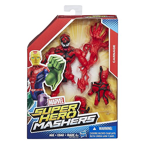 -. Binding : Toy -. Brand : Marvel -. EAN : 5054242371430 -. Feature : Super Hero Mashers Carnage figure is totally customizable / Head, arms and legs detach / Give him different superhero parts from other Super Hero Mashers figures (sold separately) / Re-create the excitement of Marvel's hit TV shows and blockbuster movies / Make your own hero mash-up with this customizable Carnage figure! He looks just like Spider-Man's nemesis, and he's got huge arms and claws for maximum destruction. But what if Carnage had even more powers, like a Rocket Raccoon arm or a Star-Lord leg? All his parts are removable so you can swap parts from other Super Hero Mashers figures (sold separately)! Customize for awesome superhero adventures with your Carnage figure!Super Hero Mashers and all related characters are trademarks of Hasbro.Marvel products are produced by Hasbro under license from Marvel Characters B.V. -. IsAdultProduct : 0 -. ItemPartNumber : B0878AS0 -. Label : Hasbro -. Manufacturer : Hasbro -. Model : B0878AS0 -. MPN : B0878AS0 -. PackageQuantity : 1 -. PartNumber : B0878AS0 -. ProductGroup : Toy -. ProductTypeName : TOYS_AND_GAMES -. Publisher : Hasbro -. Studio : Hasbro -. Title : Marvel Super Hero Mashers Carnage Figure -. UPC : 630509309856 -. Warranty : No Warranty