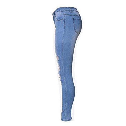 -. Feature : Denim cotton blend, high elastic and medium thickness fabric / Zip with button closure, classic five pockets design / High Waist, Hole, Ripped, Washed, Pencil Skinny Jeans / Machine Washable / NOTE:Asian Size runs small,please check the size chart in product description and we have converted to US Size for your option, but the tag shows in Asian Size.