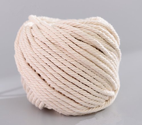 (4mm x 100m(about 109 yd)) Handmade Decorations Natural Cotton Bohemia Macrame DIY Wall Hanging Plant Hanger Craft Making Knitting Cord Rope Natural Color Beige