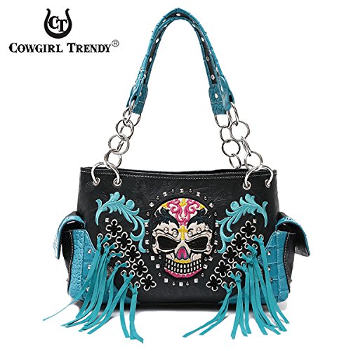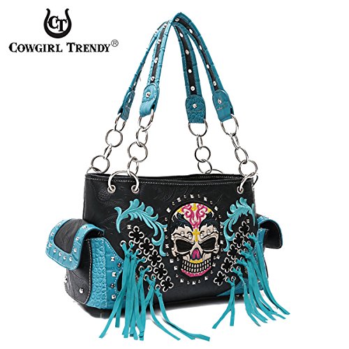 Western Handbag Biker Skull Whipstitch Fringed Concealed Carry Satchel Shoulder Bag