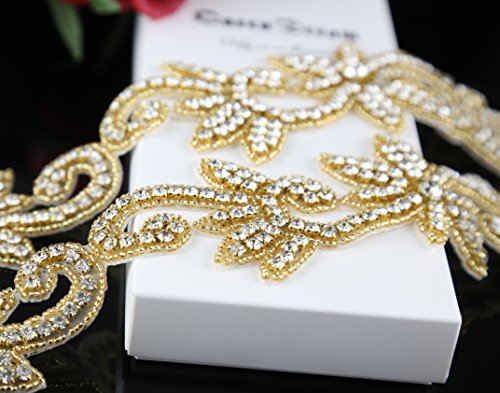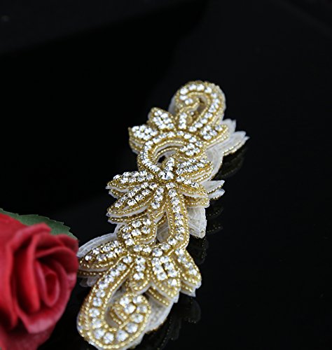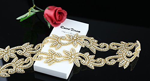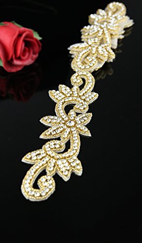 1 Yard Gold Wedding applique with Rhinestone and Crystal applique