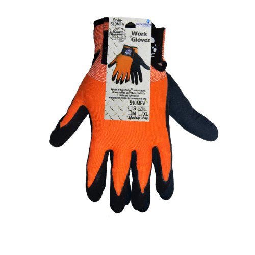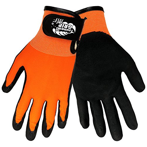 Studio : Global Glove Publisher : Global Glove Binding : Misc. Product Description Global Glove nylon mach finish nitrile with velcro closure. Black mach-finish nitrile on orange cotton/nylon shell. The unique micro finish nitrile coating provides the grip comparable to true foam/air injected nitrile but has more abrasion qualities and will not saturate through the nitrile coating. 13 gauge nylon liner. Outstanding wet oil grip. Fantastic dexterity, fit and feel. Applications: electronic assembly, food processing, automotive, construction work and general all purpose use. Orange and black color. Small size. 0