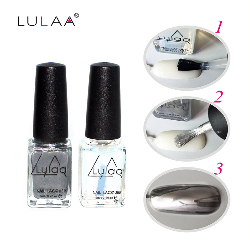 New Fashion 2Pcs Mirror Effect Chrome Metallic Silver Nail Art Varnish Polish u0026amp; Base Coat