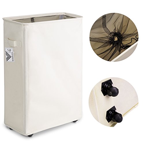 WISHPOOL Slim Slide Foldable Laundry Hamper Thicken Oxford Cloth Laundry Basket with Mesh Wheels
