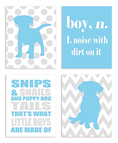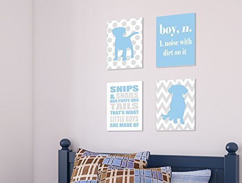The Kids Room By Stupell Snips And Snails And Puppy Dog Tails 4-Pc Rectangle Wall Plaque Set, Proudly Made in USA