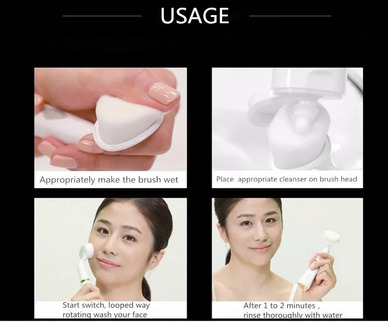 Brush Maintenance: Rinse cleansing brush head with water and then put in the ventilated place. Do not put the cleaning instrument into the water.