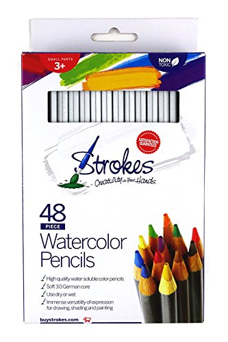-. Binding : Office Product -. Brand : Strokes Art Supplies -. Feature : Produced with carefully selected pigments to obtain high color concentration and give depth to colors / Use Wet and Dry, Different colors can be blended together to obtain different tones & effects / Color coordinated barrel tips matching each color, Conveniently boxed for easy storage when not in use / 3.0 Soft leads create a smooth color laydown for superior blending and shading / Adding water to Strokes Watercolor Pencils triggers a watercolor paint effect revealing the complete and unique power of the colors. Conforms to ASTM D4236 -. Label : Strokes Art Supplies -. Manufacturer : Strokes Art Supplies -. Model : MC-714 -. MPN : MC-714 -. PackageQuantity : 48 -. PartNumber : MC-714 -. ProductGroup : Art and Craft Supply -. ProductTypeName : ART_SUPPLIES -. Publisher : Strokes Art Supplies -. Studio : Strokes Art Supplies -. Title : Strokes Art 48 Piece Artist Grade High Quality Watercolor Water Soluble Colored Pencil Set, Soft German Core