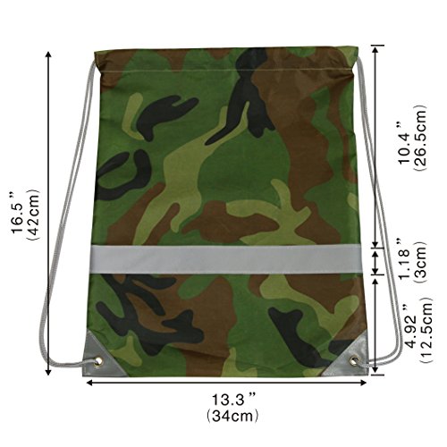 Big heat for camo party supplies,outdoor Activities. ?100% Polyester, PU reinforced corners, Grey Drawstrings, Reflective Dimensions: 16.5"h x 13.4"w. ?Perfect for boys and girls or any people with innocence. You can use them as gift for kids or you can use them as casual carry-on bags for yourself. Store shoes clothes and participate in sports classes ?Each bag comes with grey color rope as drawstring. The reflective draw string design makes you store things quickly and take them in and out easily. It can also free up your hands and it is lightweight enough to make you feel relaxed.? ?No more worry about polluting your bag because these gym bags are machine washable, recyclable and durable.? ?As a portable casual reflective drawstring bag, it is really high cost-performance and definitely would be your first choice.? ?We accept OEM orders. If you are seeking drawstring backpack with your own designs for a large social activity like marathon donation, holiday gift, please contact us and our professional designer can help making your exclusive printing designs on our bags. All BeeGreen Bags Are Satisfaction Guaranteed! If you have any issues,questions,or concerns.Please don't hesitate to contact us, so we can resolve the issue ASAP. 0 |