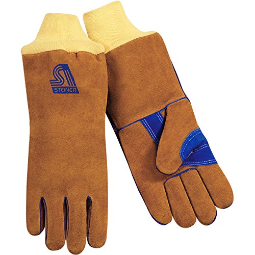 Steiner 2119B-KSC-L Welding Gloves, Brown B-Series, With Kevlar Spark Cuff, Large