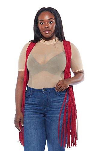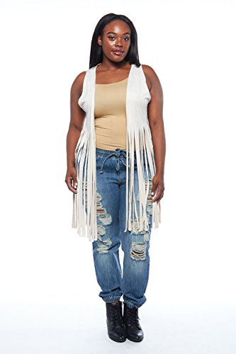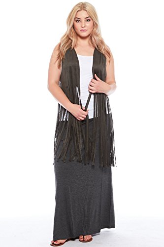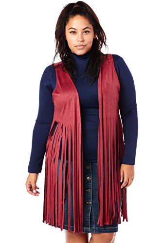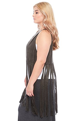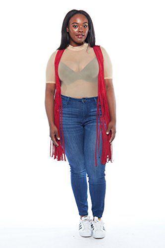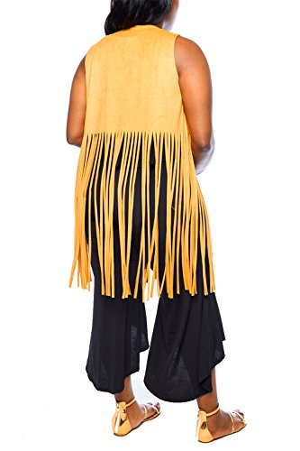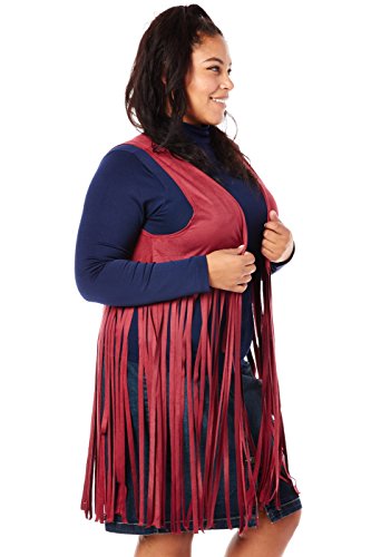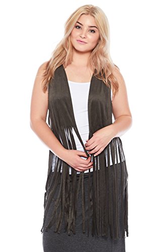 Womens Ladies Plus Sizes Curvy Stylish Suede Fringe Vests C1107X