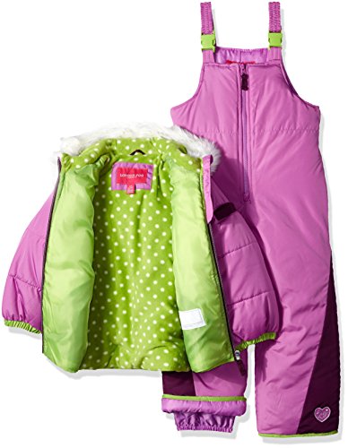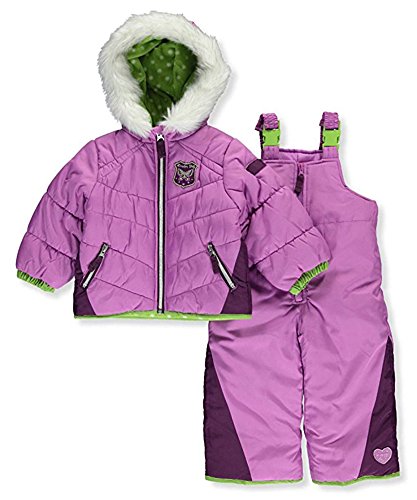 Snowsuit with snow bib and puffer jacket with fur lined hood