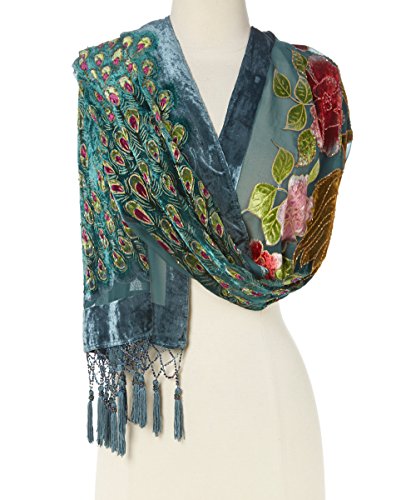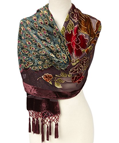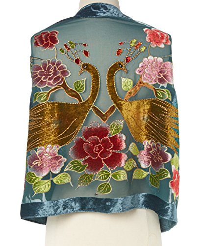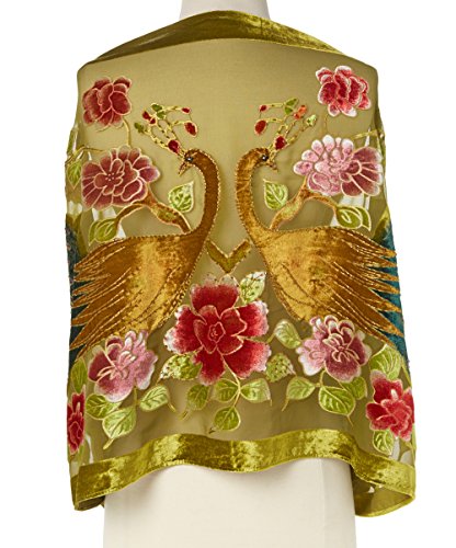 Binding : Apparel Product Description Gorgeous And Unique delicate large beaded Wrap or Shawl or Scarf with Peacocks and Flowers. Become entranced with the whirling design of this fringed shawl. Hand-sewn details add to the luxurious look, while a silk blend adds a soft and sleek appeal to the pretty piece. 0