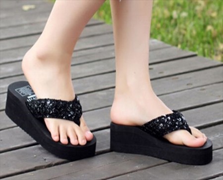 オシャレで楽チンなビーチサンダル☆ビーチだけじゃなく、タウンユースにもOKソール部分はクッション性があるので足が疲れにくくなっています◎しかも軽い!!傾斜のある厚底で、すらっと脚長&美脚魅せです。キラキラスパンコールが超オシャレ!なビーチサンダルです。■サイズ:36  (22.5-23.0cm) ヒール高さ:5cm 37 (23.0-23.5cm)38 (23.5-24.0cm)39 (24.0-24.5cm)■カラー:ブラック■素材 :ナイロン、発泡材
